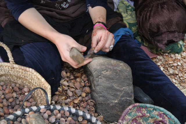 U dućanima na Atlasu gdje se i najviše nudi arganovo ulje lokalne žene vrlo zorno prikazuju cijeli proces proizvodnje.