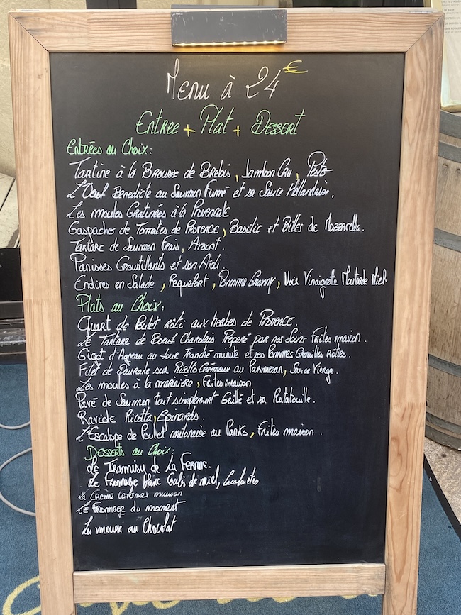 u drugom restoranu 26 EUR. To je sigurno i razlog zašto su restorani puni, prvenstveno domaćih gostiju. Ne smijemo zaboraviti da je prema statističkim podacima prosječna neto plaća u Francuskoj za 2024.g. bila 2587 EUR, a u Hrvatskoj 1366 EUR, pa su Francuzima ove cijene u biti duplo manje. Kod nas bi, ako bismo gledali prema plaći, dnevni menu od 3 slijeda trebao u stvari biti 12 -13 EUR.