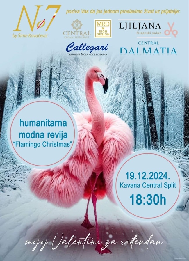 Jučer je u Splitu održana održana deseta humanitarna modna revija "Flamingo Christmas" reportera i modnog dizajnera Šime Kovačevića s motom: "Slavimo život, mojoj Valentini za rođendan”. Zadnje tri godine Šime je organizira u povodu rođendana svoje sestre Valentine, koja je preminula od posljedica karcinoma dojke, nakon gotovo pet godina borbe. Reviju su nosile amaterske manekenke i manekeni, prije svega članice Udruge „Caspera“ – žena liječenih od karcinoma, te članice Udruge za palijativnu skrb Split, uz poznate Splićane iz javnog, kulturnog, poslovnog i sportskog života. Pomoć u organizaciji revije pružili su prijatelji iz Talijanske škole mode i dizajna Callegari te frizerskog salona Ljiljana i domaćina iz kavane Central na splitskoj Pjaci.