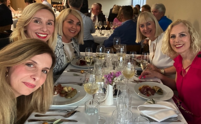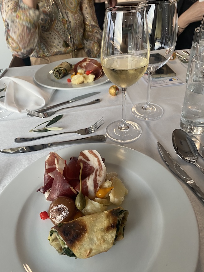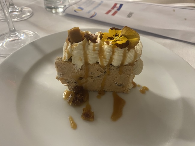 Glavno jelo je sito tako bio austrijski doprinos - Teleći odrezak, teleći ragu uz pire od pastrnjaka i kratko prženo povrće. Uz to se sljubio Merlot Medea 2023. iz vinogorja zapadna Istra.