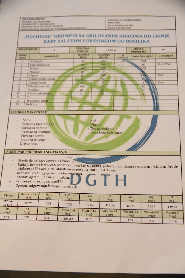 Drugo mjesto osvojila je Ana Milošević iz Srbije, s Odsjeka za geografiju turizam i hotelijerstvo novosadskog PMF-a, dok je treći Dragan Šljivić iz Bosne i Hercegovine, šef kuhinje banjalučkog Monograma.