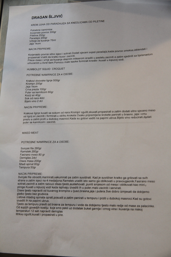 glavno jelo. On je bio treći, pa evo njegovog cijelog menua: