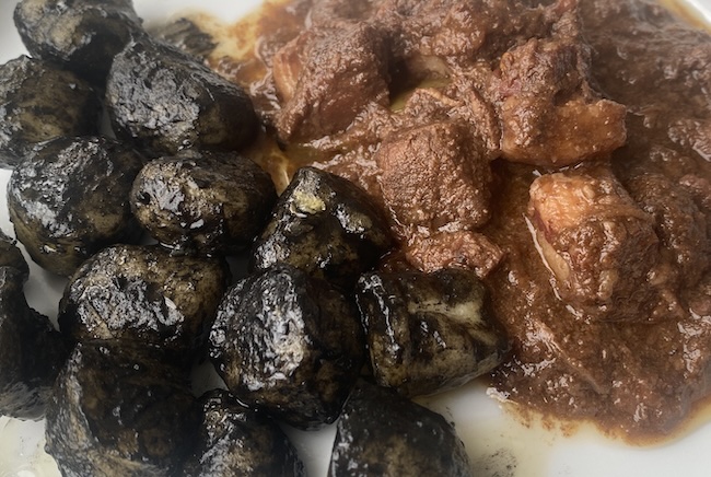 Bakalar na brujet sa višnjom i pečeni njoki sa sipom i višnjom.