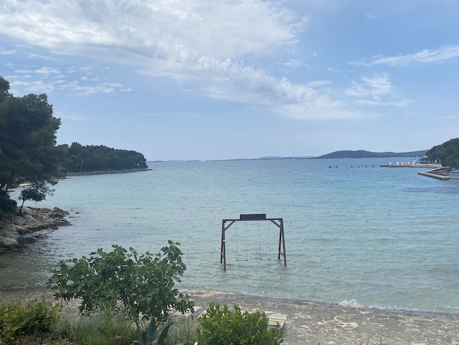 Biogradska tura je počela u Crvenoj luci, turističkom kompleksu kojeg se sijećam iz djetinjstva. Kako je ovo jedna od rijetkih pješčanih plaža u ovom dijelu Dalmacije, često su nas roditelji, čak iz Šibenika, vodili na kupanje i cjelodnavni izlet u Crvenu luku.