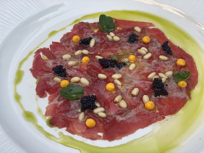 Carapaccio od tune s pinjolima.