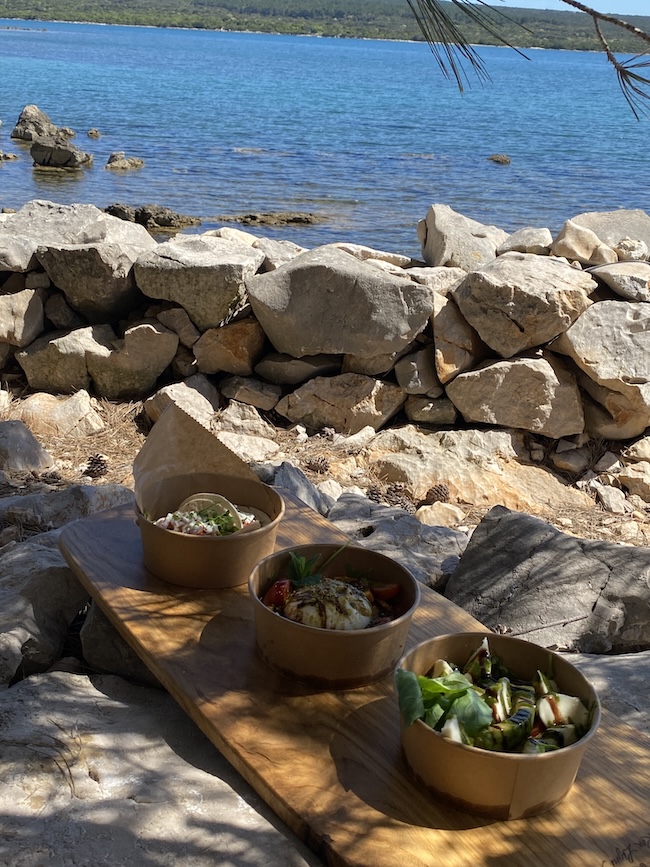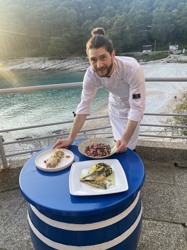 Burratu s avokadom s lošinjskim biljem i cvijetom bosiljka; Burratu s breskovom, lošinjskim medom i mentom i Trganu creska janjetina u tacosu. Gastronomsku ponudu su pratila vina vinarije Sosich iz Vižinade.