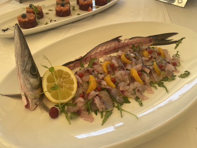 Certifikat su dobili za Carpaccio od zubaca, ali kako zubaca nije bilo na isti način su pripremili izvrsni Carpaccio od baracude - Tanko narezana svježa baracuda, poslužen na posteljici od svježe rukole, začinjen s nekoliko kapi maslinovog ulja i limunovog soka.