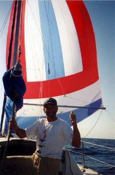 Od Patrasa do Astakosa promijenio sam sva moguća jedra ! Evo me u fazi driftera: autopilot upravlja; "autoknips" snima, a Barba ljenčari i pozira! |