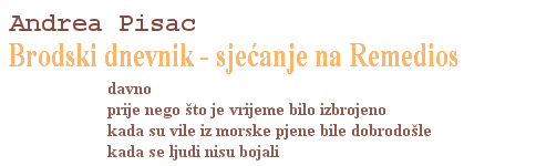 Noćas spavamo na brodu. Malo ćemo se ljuljati. Miris soli ulazit će nam kroz otvorena vrata. Uspavat će nas pjesma jedrilica. Sve, koliko ih god ima privezanih u marini, pjevaju svoju tužnu pjesmu i udvaraju se ljudima da ih puste u vjetar. Sve što žele je voditi ljubav s njim. Magičan im je glas. Zaspali smo. Probudit će nas prva sunčeva zraka.