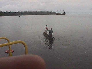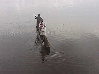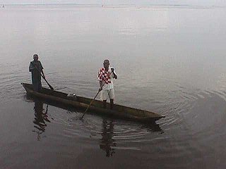 Kako u tom rukavcu i na jednoj i na drugoj strani žive ljudi u svojim primitivnim selima, bez vode i struje i ikakve zaštite, tako je i komunikacija među njima česta, jedinim prijevoznim sredstvom koje im je dostupno, kanuom, ... na pariće. Tko ima vanbrodski motor (a takvi su rijetki) on je kapitalista, te jedan od utjecajnijih ljudi u selu. Jedan od takvih bio je i Antonio Figueirdo Kwame. Kojega je rođak sjekirom ubio radi dijela stare obiteljske kuće, pa je Kwamin brat morao uzeti i Kwaminu ženu i Kwaminu djecu na skrb, s istim pravima i obavezama kao što ih ima i njegova vlastita obitelj. A Kwami je selo priredilo velečanstven sprovod, napravivši mu kaselu u obliku električarske kacavide, jer je Kwama bio električar u Angolanskoj vojsci. Grob na plaži su mu kopali ni više ni manje nego sedam puta, jer su šest puta na neoznačenim parcelama pijeska nailazili na tuđe kosti. Dakako ni Kwamino posljednje počivalište nisu označili ničim, niti križom niti električarskom kacavidom. Brat Lembe, uz udovicu i pokojnikovu djecu, naslijedio je bratov motorni čamac i ugled. Dakle stanovnici i jedne i druge obale nemaju šanse biti debeli, ma koliko jeli, kad im se čitav život sastoji od veslanja preko rukavca i to u stojećem položaju. Kako svakodnevno oko broda prolaze mnogi kanui, više ni ne obraćamo pažnju na njih, osim ako za malo hrane i pokoju konzervu dođu zamijeniti desetak jastoga, brdo škampi ili ostalih vrsta rakova. No baš toga dana, kad sam ispunjavao brodski dnevnik, tekućim informacijama, ugledah dvojicu lokalnih mještanina u kanuu. Sve to i ne bi bilo toliko zanimljivo, da jedan od njih nije bio čudno odjeven. Uzeo sam kanoćal i uvjerio se da je tako. Naime umjesto, kao i obično, da je do pasa gol ili odjeven u dronjke, crni Angolanac bio je kompletno odjeven u dres hrvatske nogometne reprezentacije, a da iznenađenje bude još kompletnije, na leđima mu je ispod broja 9 pisalo "Šuker". Odmah sam otrčao do kuhinje, uzeo dvije konzerve sardina, pa u kabinu po foto aparat, a odtle ravno na krmu kuda je Šuker prolazio. Zviždukom ih pozvah, potom darivah konzervama i zamolih da mi poziraju na trenutak, što su i učinili, a zatim se uputiše put svoga sela, veslajući parićima po mirnoj vodi Konga.