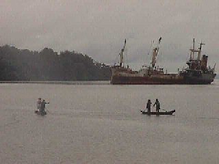 10. prosinca 2002, usidereni, već drugi mjesec, na sidrištu Kwanda baze, Soyo, na ušću rijeke Kongo, po čijim su brzacima, daleko na sjeveru Caterine Hepburn i Humprey Bogard s "Afričkom kraljicom" bježali iz katoličke misije. Toplo i sparno, a tijelo samo traži hladovinu. Obavljao sam na mostu svoje dnevne birokratske obaveze pod utočištem blagodati što ga pruža klima uređaj, gledajući davno nasukanu ciparsku "Evangeliju IV", razmišljajući kako je morala izgledati ta akcija, kad je grčki kapetan pokušao pobijeći iz luke Soyo, pod žestokom vatrom Angolanskih pobunjenika. Na kraju je svom snagom završio na sprud i tamo se zapalio, pa tako ta olupina, puna rupa ispod i iznad vodene linije stoji već desetak godina. Što je s posadom bilo, to vam nitko ne zna reći. Tužan kraj, no i to se događa.