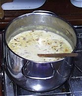 | Za 15 ljudi 3.5 kg mesa mješanog - junetine i teletine. meso se stavi u hladnu vodu, odmah se doda soli, papra u zrnu, jedna kapula prerezana na pola i zapečena na otvorenom plamenu, 3-4 očišćene mrkve, dvije manje svježe rajčice, malo pirea od rajčice (konšerve), list selena, žličica Vegete (moram priznati da ja meni s Vegetom drago kuhati). Nakon sat i po juha je gotova, procjedi se i ukuha malo tjesteine. |