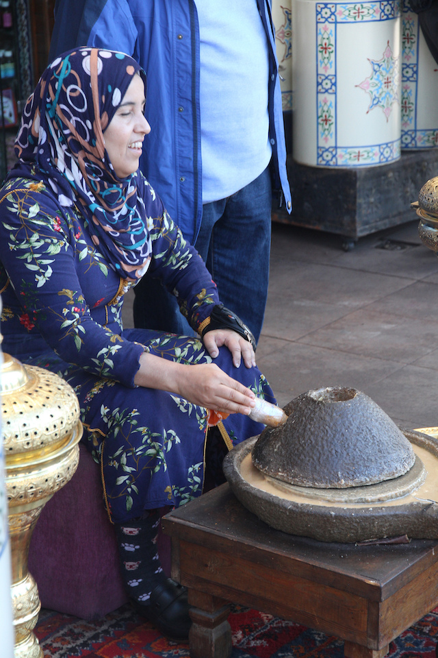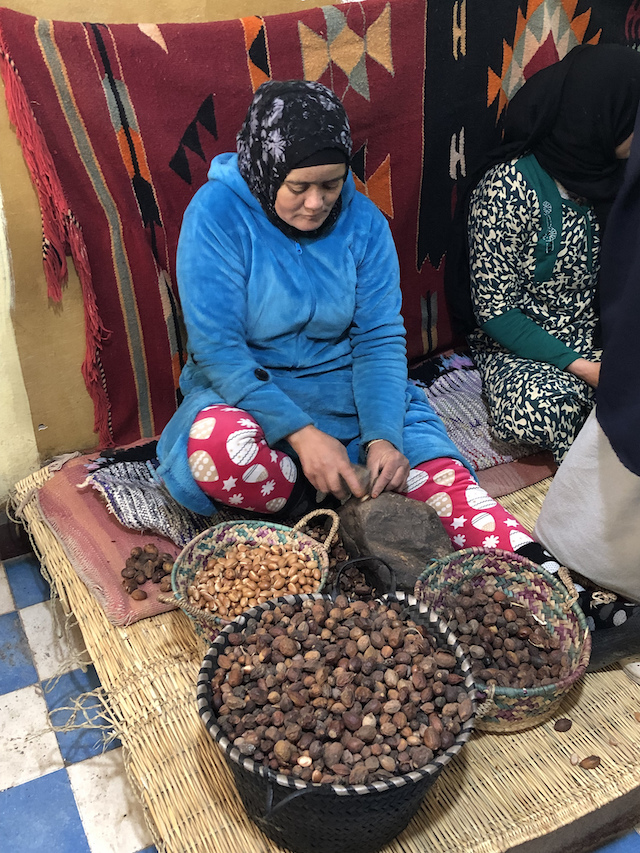 U dućanima na Atlasu gdje se i najviše nudi arganovo ulje lokalne žene vrlo zorno prikazuju cijeli proces proizvodnje.