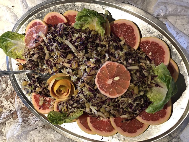 Složenac od kupusa i dagnji i rižoto od kozica.