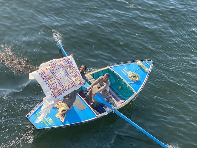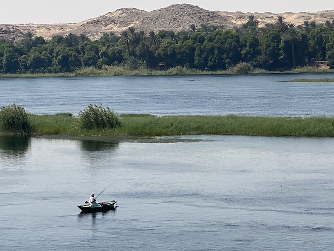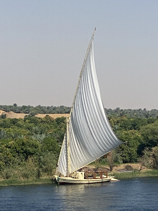 Vjetar još uvijek puše, pretežno okomito na rijeku, pa tradicionalni egipaski brodovi feluke i dalje klize površinom Nila ...