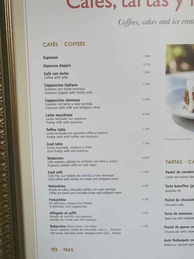 Lokaciji odgovaraju i cjenici u lokalnim kafetrijama. Cijena kapučina je 5,20 EUR ako želite talijanski, a ako želite bečki čak 5,80 EUR (nisam niti znao da postoji bečki kapučino).