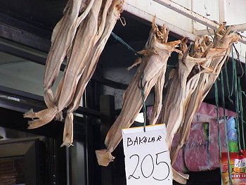 U našim je krajevima popularaniji sušeni a ne soljeni bakalar koji norvežani zovu torrfisk , a njemci stockfish . Prije dva dana, na Badnjak, cijeli je Split po njemu mirisao, a gradsko i županisko poglavarstvo se natjecalo tko će narodu ponuditi bolji bakalar. Grad je na Pjaci djelio 1000 porcija "bakara na bjanko", a županija u kavani Belveue 250 porcija "bakalara na brudet". Nisam probao ni jedan od njih pa ne mogu niti suditi koji je bio bolji. Skuhao sam svoj, na brudet, po šibenski o čemu više riječi u slijedećem nastavku i probao na bjanko u Chronu kod Marina. Bio je izvrstan.