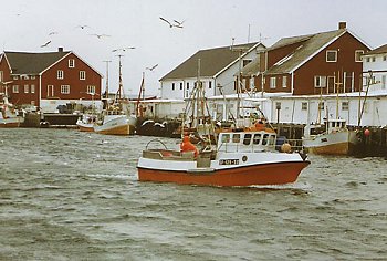 | Panorama Lofotena | Ribarska luka Henningsvar i tipičan ribarski brod.. |