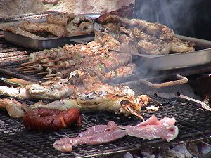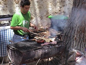 | peku sve i svašta: meso, kobasice, ražnjiće, ribu, povrće ... Piva i vino se toče na hektolitre. |