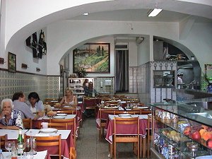 Drugi tipičan "narodni" restoran. Ovaj se smjestio u strmoj ulici Aug.Rosa prema Castelu. 8 stolova i puno Portugalaca. |