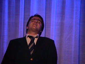 | Pjevač fada se toliko zanio da se umalo nije srušio sa pozornice. Obratite pažnju na detalj: raskopčano gornje dugme i prugasta polieser kravata. Potsjeća li vas to na neke naše vizure ? |