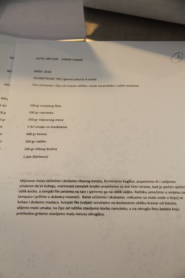 glavno jelo. On je bio treći, pa evo njegovog cijelog menua: