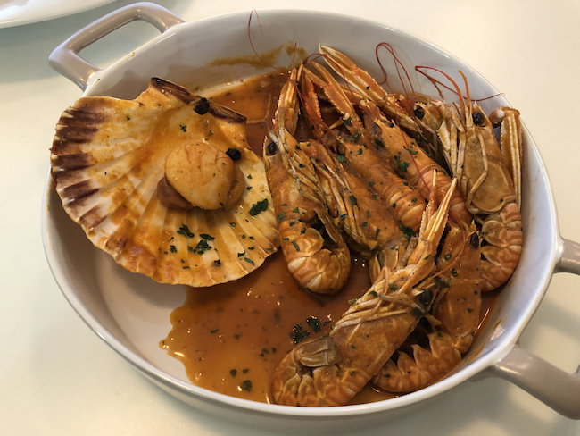 Bogata buzara od jakopskih kapica i škampa.