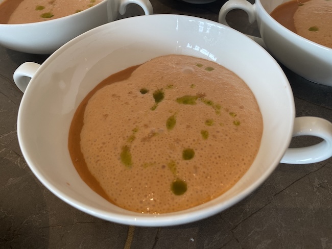 Gaspacho od višnje, teksturizirana pjena i ulje od bosiljka