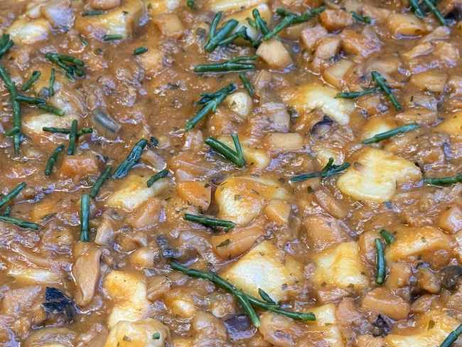 Među jelima posluženim na trećem gastroadvent bila je i palenta aromatizirana morskim algama s brdetom, pohanom bukvom i aromatiziranim želeom od agar agra (ružićasta loptica na vrhu).