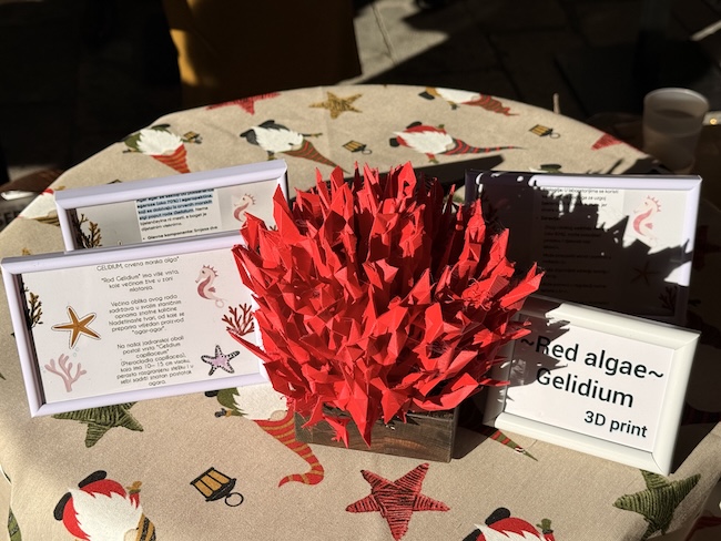 zahvaljujući trudu suradnice na projektu Petre Bošnjak i autorice manifestacije nutricionistice Olje Martinić i tvrtki DVision_Tech iz Čakovca koja se vrlo profesionalno bavi 3D printanjem (tiskanjem). Imaju više od 30 3D printera i mogu isprintati prototip kakav god želite. Crvena alga Gelidiom je najbolji primjer.