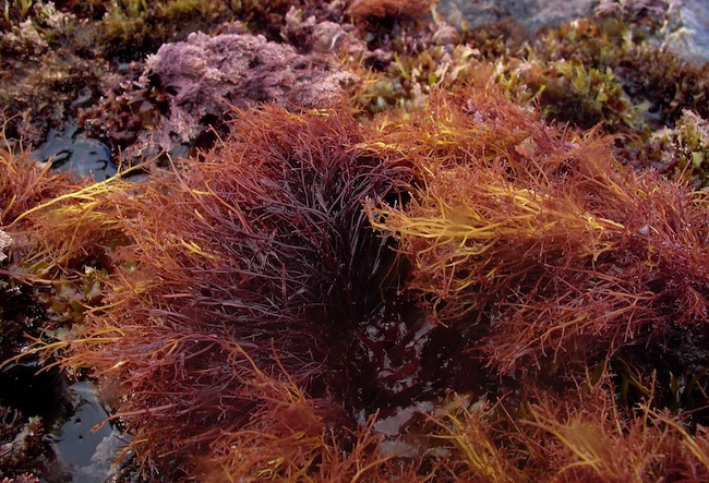 Red crvene morske alge - Gelidium ima više vrsta koje većinom žive u zoni mlataranja valova. Većina oblika ovog roda sadržava u svojim staničnim opnama zlatne količine hladetinaste tvari od koje se preparira vrijedan proizvod agar-agar.