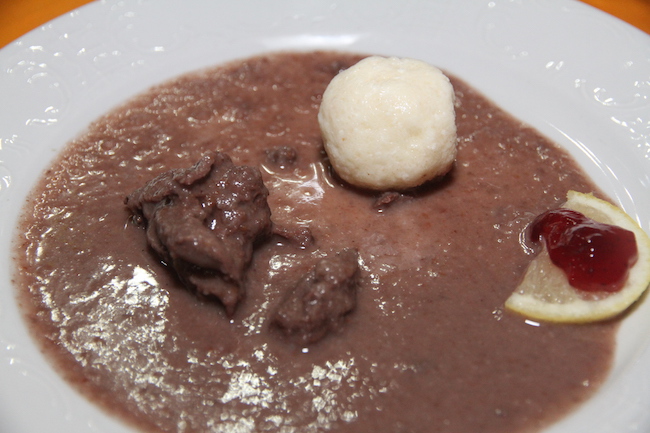 Jelen u črnoj juhi i knedlice od sira uz PPO Frankovka 2012