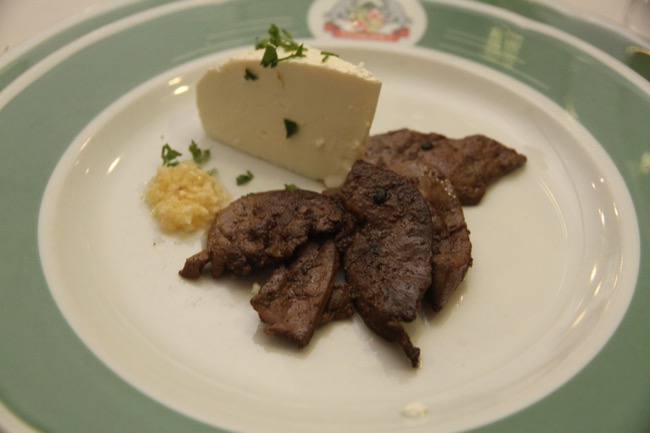 Janjeća jetrica na jaškovski (s kolutovima ozaljskog eko luka i bakinim sirom s vrhnjem) uz Kupažu cabernet sauvignona i merlota Zigante iz 2014.