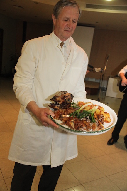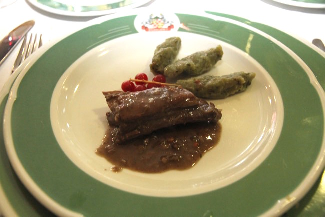 Janjetina na način ozaljskih plemića (u crnom vinu i cimetu s njokima od mladog špinata, đumbira i ribizla), salata od cikle uz Gotho pinot crni 2012. Kutjevo.
