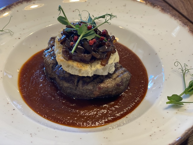 Biftek u umaku od prošeka s brusketom.