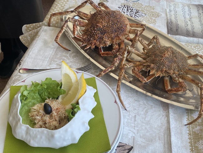 Salata od rakovice - Svježa delicija, pripremljena od očišćenog mesa rakovice, začinjena s malo maslinovog ulja i limunovim sokom, servirana u oklopu rakovice na listu zelene salate, uz tople integralne kruhiće.