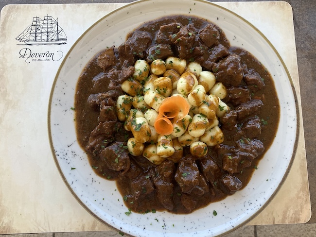 Gulaš od cresko-lošinjske divljači - Robustno jelo koje kombinira meso vepra, jelena i muflona, sporo kuhano s korjenastim povrćem, koncentratom rajčice, crvenim vinom i čokoladom, servirano uz aromatiziranu palentu s lošinjskim travama i parmezanom.