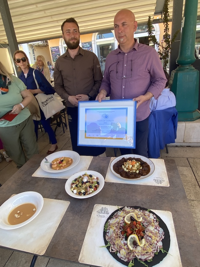 Certifikat Taste of Vitality su dobili za Juhu od rakova; Salatu od rakovice; Škampe s polentom; Otočnu janjetinu "pod teću" i Sorbet od limuna s lošinjskom mirtom. Jela su pratila vina vinarije Pilato i Drago distribucije: pjenušac Rose vinarije Kolarić - Coletti; Malvazija Pilato; Plavac mali vinarije Katunar.