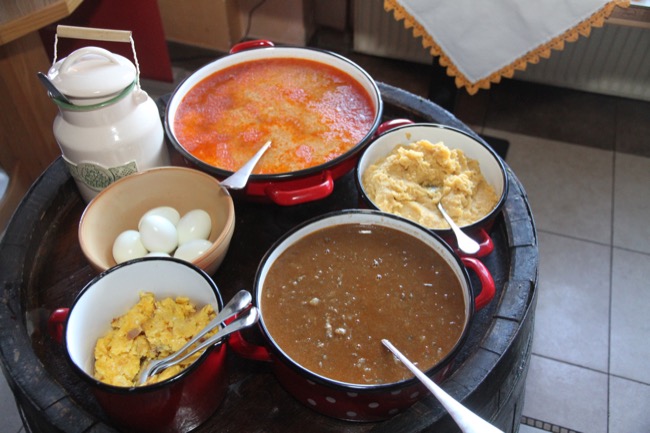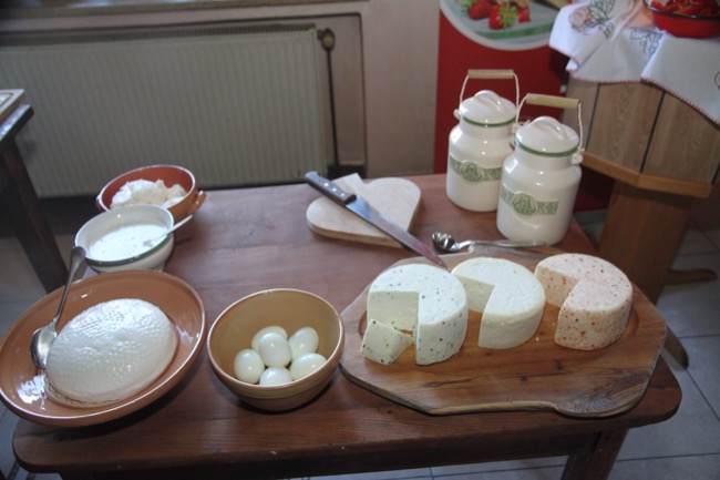 mladi sir, vrhnje, tvrdo kuhana domaća jaja, tri vrste sira s dodacima,