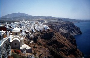 Ostavivši SING-SING u luci IOSA, odjurili smo lokalnim hidrigliserom do još južnijeg otoka THIRA - SANTORIN. Thira je prirodni fenomen: ostatak i svjedočanstvo strašne vulkanske kataklizme u antičko doba, eksplozije cijelog otoka, koja je uništila gotovo svu tadašnju visokorazvijenu otočnu civilizaciju. Na rubu ostatka kratera, iznad duboke provalije što se ruši u dubinu mora, smjestio se blistavo-bijeli gradić, doslovce okupiran turizmom! Mario i ja cijeli smo dan šetali i vozili se otokom (lokalni autobusi fenomenalno funkcioniraju!) snimajući i uživajući u zaista nevjerojatnim vizualnim kontrastima: crno vulkansko kamenje, modro more i nebo, bijele kuće Ciklada....Neponovljivo... Neopisivo! Šteta je da THIRA nema nikakve luke, tako da jahte rijetko zalaze ovamo.