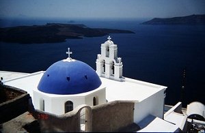Foto-prizori koji se ukazuju na Thiri, oduzimaju dah: crno vulkansko stijenje, blještavo bijeli zidovi, modre kupole, nebo i more... Bio bi to «kič», da nije zbilja! |