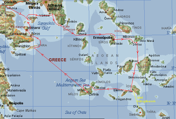 Po povratku na IOS otišao je i Mario. Dalje ću nastaviti sasvim sam. SING-SING i ja solidan smo tim, prejedrili smo zajedno cijeli Jadran mnogo puta... Opet ću ponoviti ono o krstarenju CIKLADAMA: valja se držati smjera kretanja kazaljki na satu: od Posejdinovog hrama na rtu SOUNION kreće se na istok, istovremeno se spuštajući pod udarima MELTEMIJA ka jugu...sve do južnih otoka CIKLADA. Zatim se skreće natrag na zapad PELOPONEZU, uvijek nastojeći primati MELTEMI u bok ili tek malo sprijeda, nikada boreći se direktno s njim. Kako se odmiče od centra CIKLADA ka zapadu, MELTEMI slabi, a mijenja se postepeno i njegov smjer, postajući povoljniji za povratak ka sjeveru...Tako se može doseći otok IDHRA (HIDRA) ili barem ARGOLIKOS KOLPOS (zaljev), odakle se, već po sasvim normalnom vjetru i moru može vratiti (motorom ili križajuci) ka sjeveru i SARONSKOM ZALJEVU.