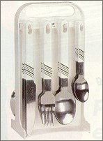 - Drugi je pristup kupovina običnog pribora za jelo, ili još bolje upotreba svih onih rasparene žlica i vilica koje imamo kod kuće (a za kuću kupiti novi komplet što sam ja napravio kada sam opremao svoj brod). Kod ovakvog pribora za jelo koji nema posebnu nautičku garanciju puno je bolje uzeti onaj koji je cijeli od metala. Spoj plastične ručke i metalnog dijela, naročito kod talijanskog pribora, najčešće brzo korodira.