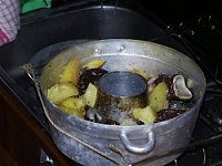 Nedavno sam slučajno u Splitu nabasao na isti takav lonac samo veći, promjera 28 cm. Cijena je bila prihvatljiva, 115 kn, pa se, sjećajući se nedostataka manjeg lonca, nisam dvoumio. Novi lonac je u osnovi bio vrlo sličan, malo drugačijeg oblika poklopca i nedostajao mu je dodatni aluminijski tuljac. Kazali su mi da je on suvišan i da se više u kompletu ne isporučuje.