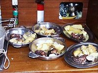 ![]() Pripremanje hobotnice "pod pekom" u uvjetima skućene brodske kuhinje. |